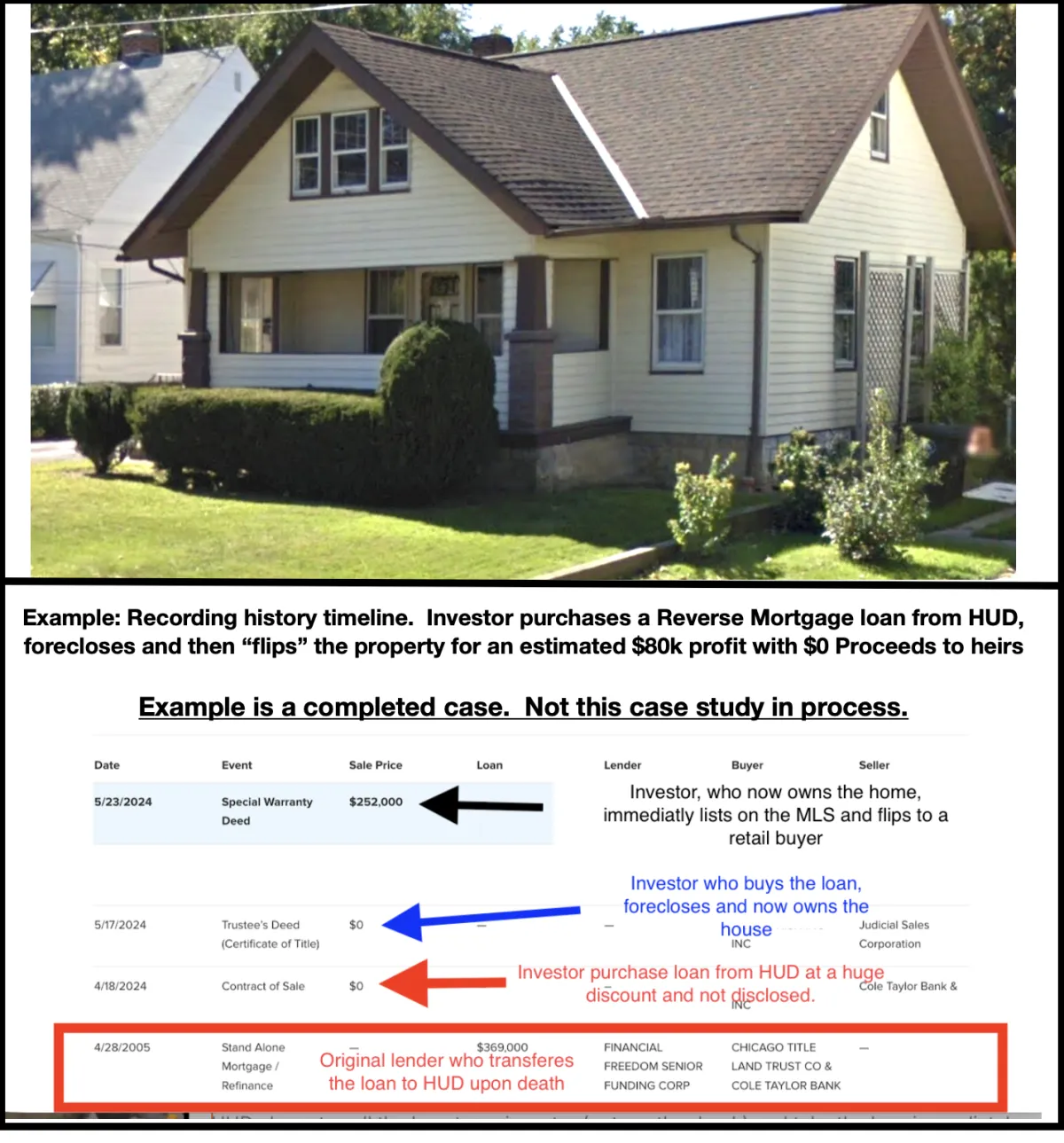 Thus, the investor ends up with a home purchased for approximately $90,000 that is worth $165,000 to a retail buyer, without needing to do any renovations. This results in a gross profit margin of $75,000. Unfortunately, after the foreclosure process is complete, the heirs have no leverage to recover any of this profit.